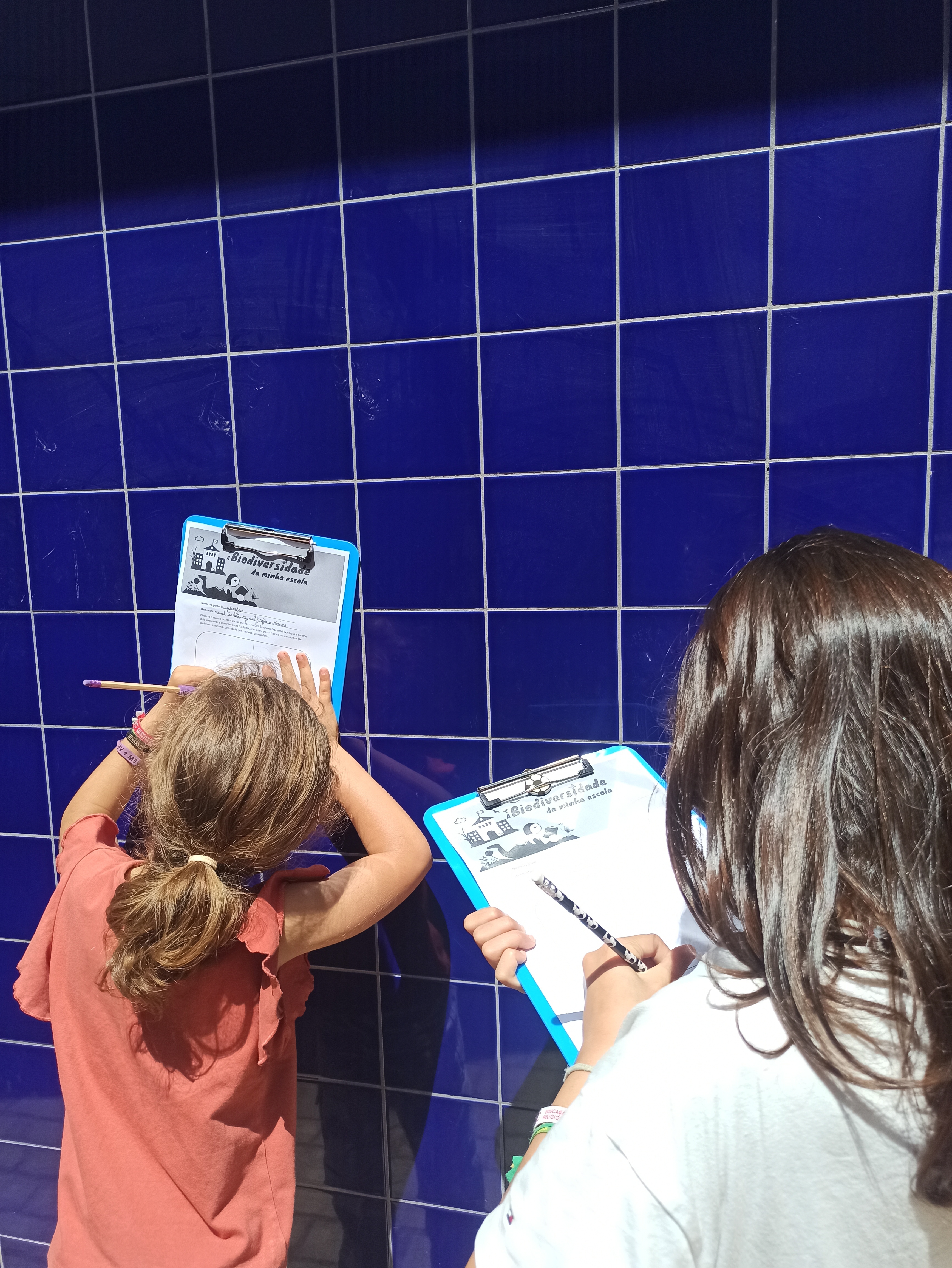 Cada grupo vai explorar uma zona do recreio ou jardim, com o objetivo de observar e identificar seres vivos (plantas, formigas, pássaros, folhas diferentes, etc.).