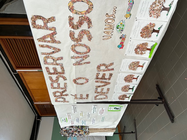 #Colagem junto da árvore das frases com mensagens de sensibilização a quem visita a escola e restantes alunos