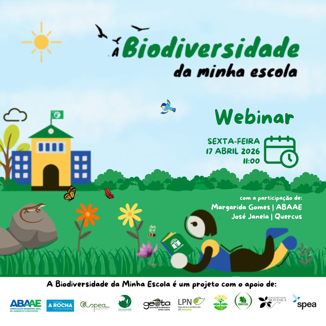 No âmbito do projeto “A Biodiversidade da Minha Escola”, decorrerá no dia 17 de abril de 2026, um webinar com o mesmo nome, na plataforma zoom, entre as 11h00 e as 12h00, seguido de um período adicional para esclarecimento de dúvidas até às 12h30.